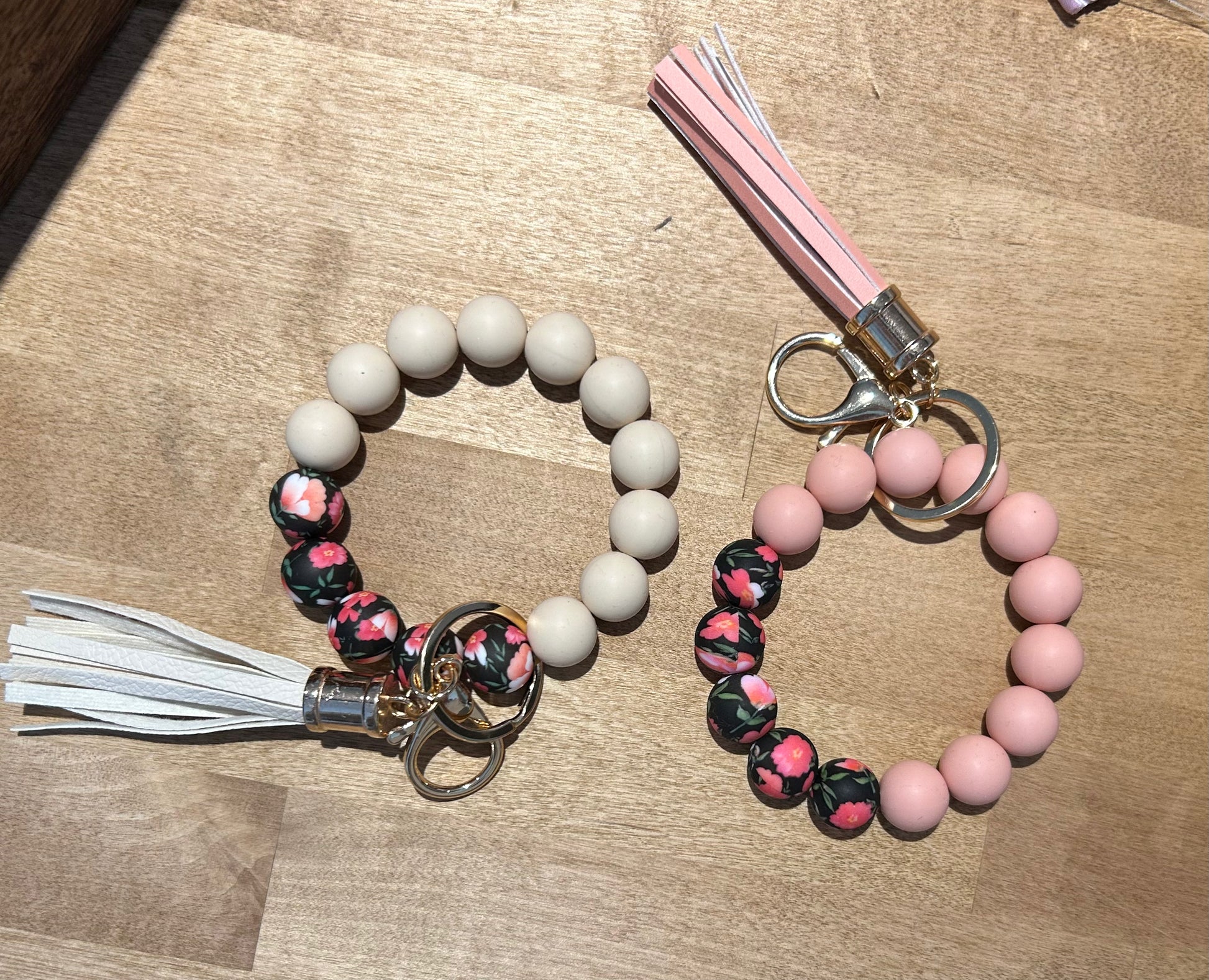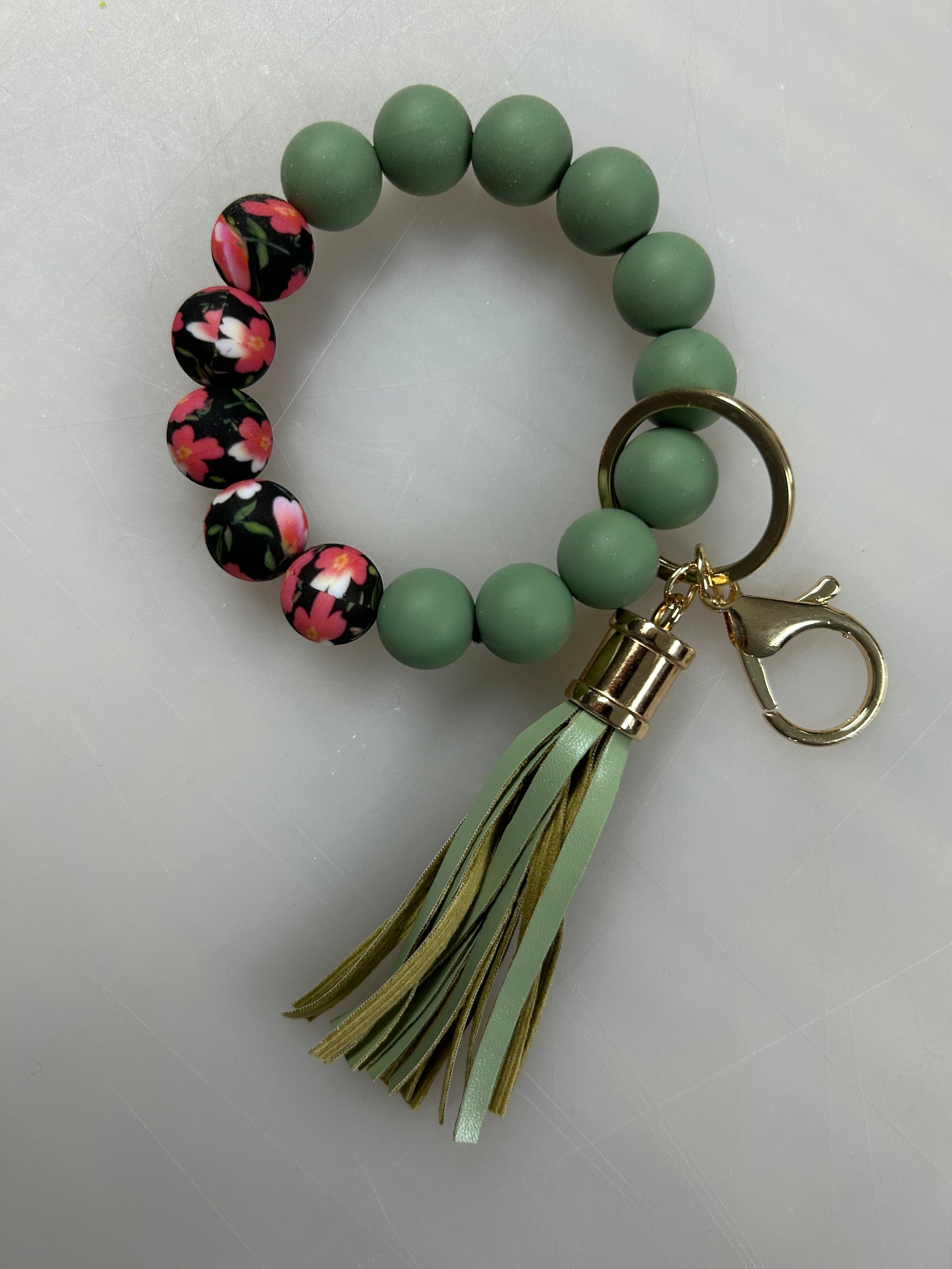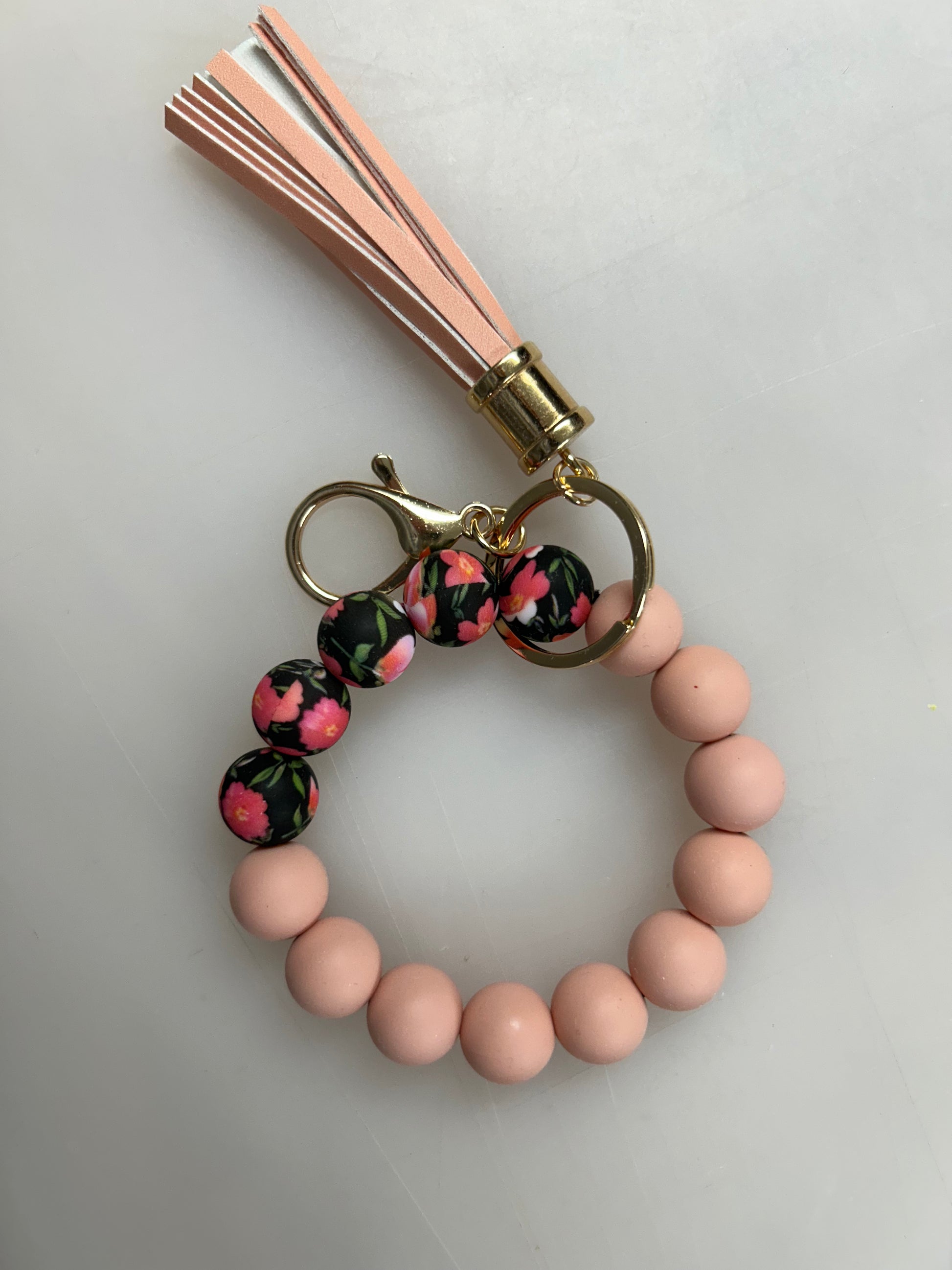 Floral Beaded Keychain Wristlet